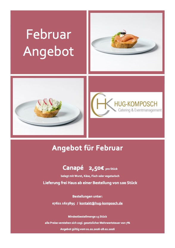 Nach 30 Jahren „Service rund um´s Fest“ mit Günter Komposch und über 70 Jahre „Partyservice Hug“ aus Steinen, schließen diese sich beiden erfolgreichen Unternehmen ab dem 01. Oktober 2023 zusammen. Durch die Zusammenlegung beider Firmen kommt jahrzehntelange Erfahrung, Ideenreichtum, Kreativität, Stärke und Professionalität zusammen. Das Ziel hinter dieser Idee, ist für Sie als Kunde das „perfekte Event“ zu schaffen mit nur einem Ansprechpartner für all ihre Vorstellungen und Wünsche.